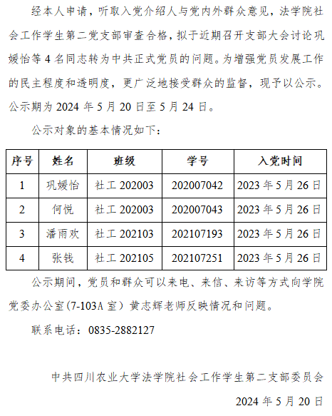 yl8cc永利官网社会工作学生第二支部委员会拟讨论转正公示
