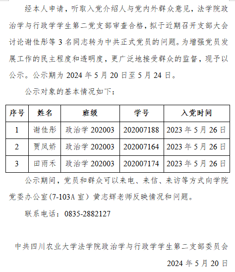 yl8cc永利官网政治学与行政学学生第二支部委员会拟讨论转正公示