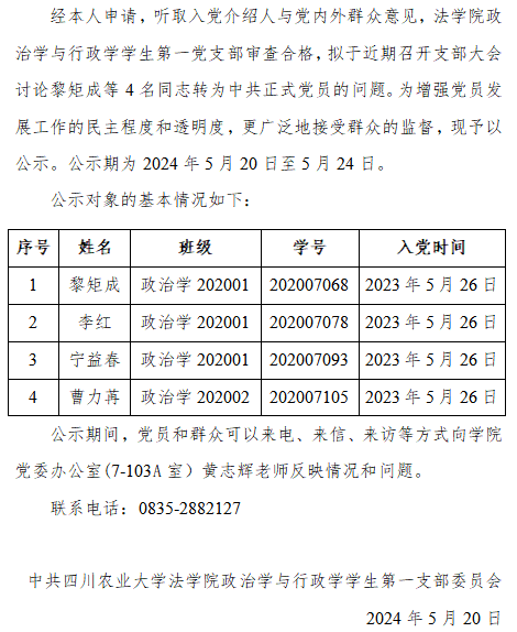 yl8cc永利官网政治学与行政学学生第一支部委员会拟讨论转正公示