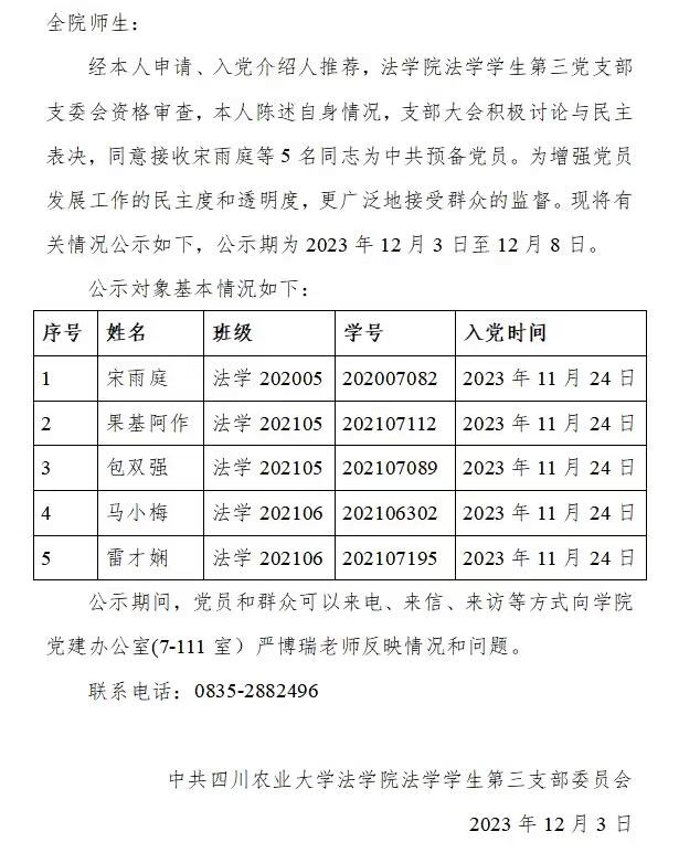 关于接收宋雨庭等5名同志为中共预备党员公示