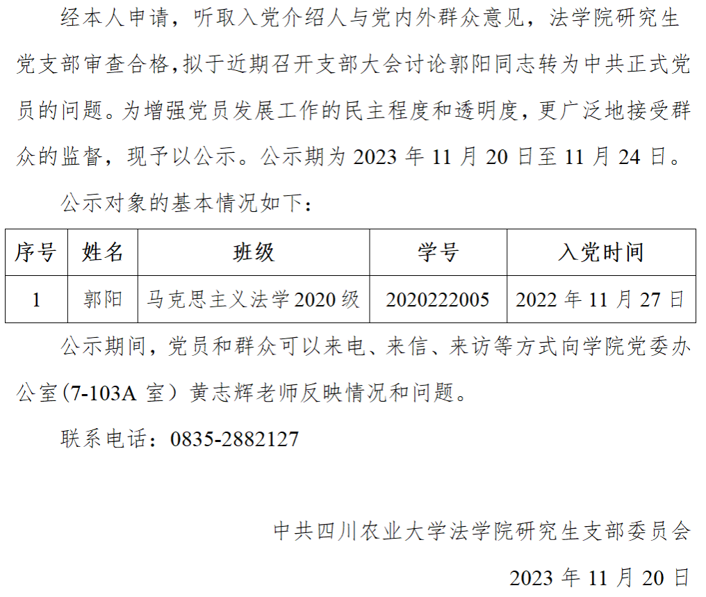 关于拟讨论郭阳同志转为中共正式党员的公示