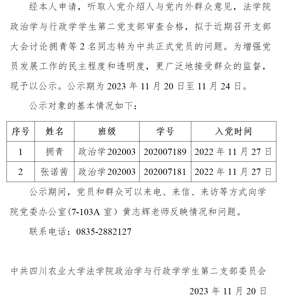 关于拟讨论拥青等2名同志转为中共正式党员的公示