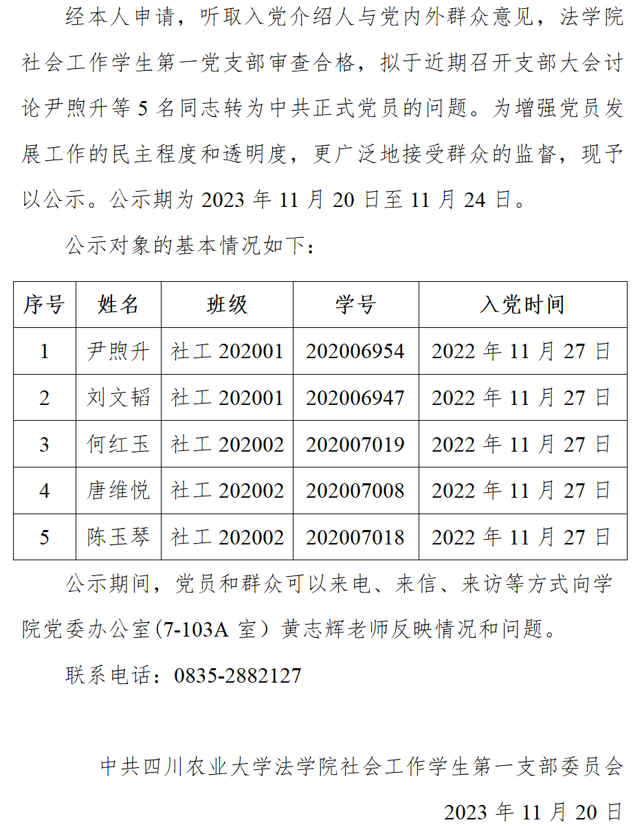关于拟讨论尹煦升等5名同志转为中共正式党员的公示