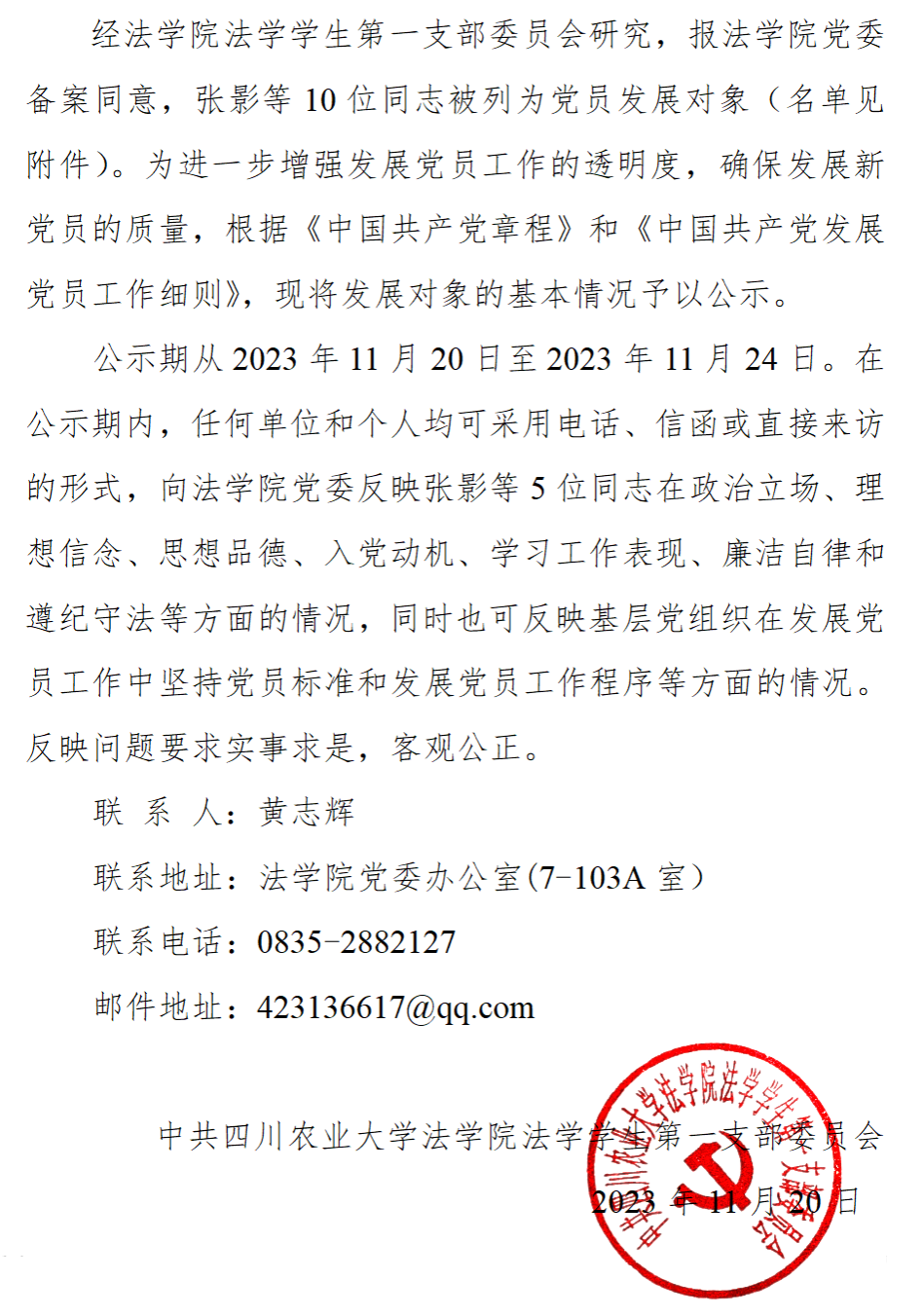 关于拟讨论接收张影等10位同志为中共预备党员的公示