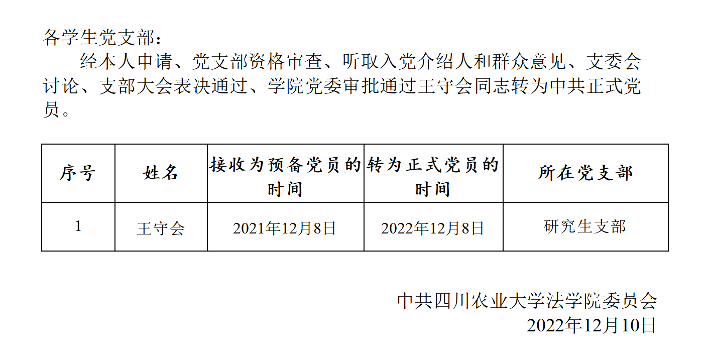 关于王守会同志转为中共正式党员的批复