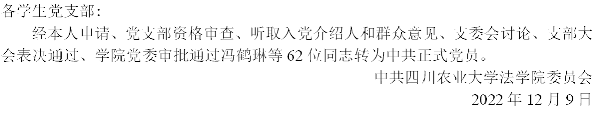 关于冯鹤琳等62位同志转为中共正式党员的批复