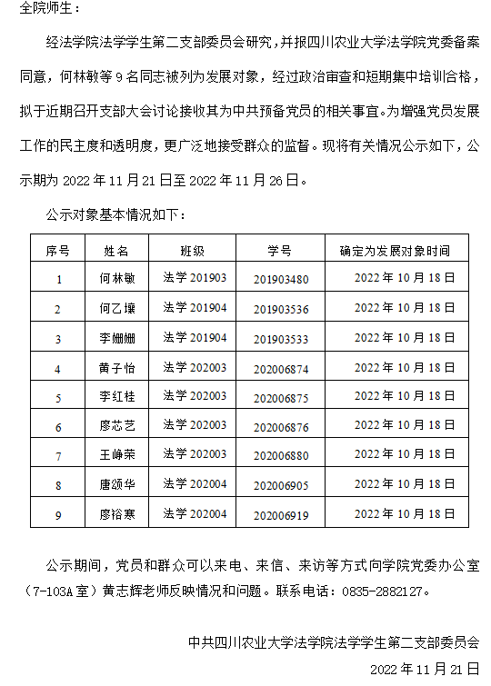 关于拟讨论接收何林敏等9名同志为中共预备党员的公示