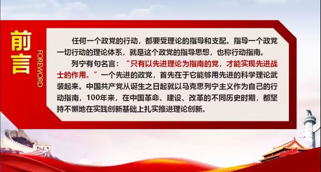 通过本次党课,全体学员系统回顾了中国共产党指导思想的发展和演进脉络,使学员们明确了党的宗旨性质,深刻理论思想,进一步端正了学员们的入党动机,激发其向党组织靠拢的决心。