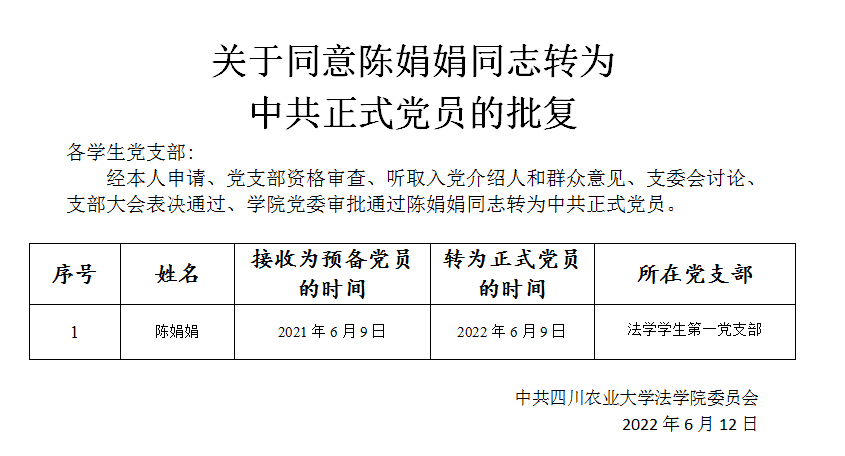 关于同意陈娟娟同志转为中共正式党员的批复