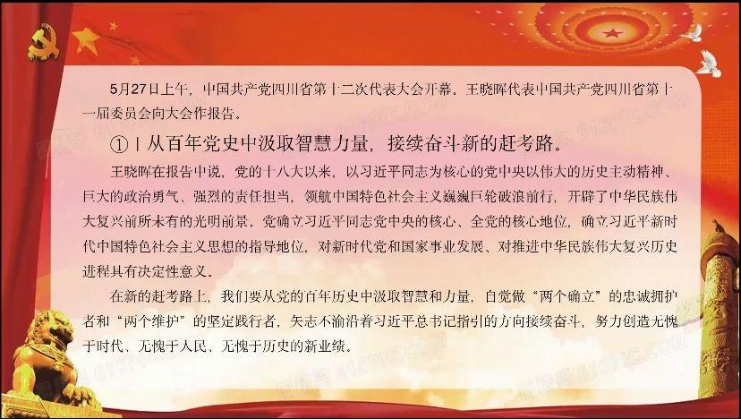 会议开始,李泽丰同志带领与会党员齐唱国歌,然后就本次政治理论学习会议内容总体进行介绍。此后,李泽丰同志带领大家学习了四川省第十二次党代会的主要内容,会议强调,广大党员干部要把学习好、宣传好、贯彻好省的第十二次党代会精神作为当前和今后一个时期的重要政治任务,切实把思想和行动统一到省党代会精神上来,努力以“一域之光”为全局添彩。紧接着,李泽丰同志对国务院和四川省政府关于高校毕业生创新创业方面的政策文件进行详细的介绍,并且根据现在的社会求职就业的大环境、学校的求职就业政策以及当代高校毕业生的具体情况来说明政府对于高校毕业生创新创业能力的重视和鼓励。