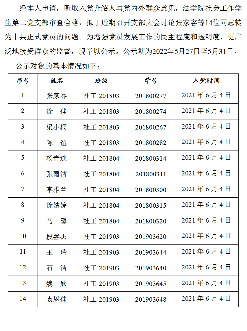 关于拟讨论张家容等14位同志转为中共正式党员的公示