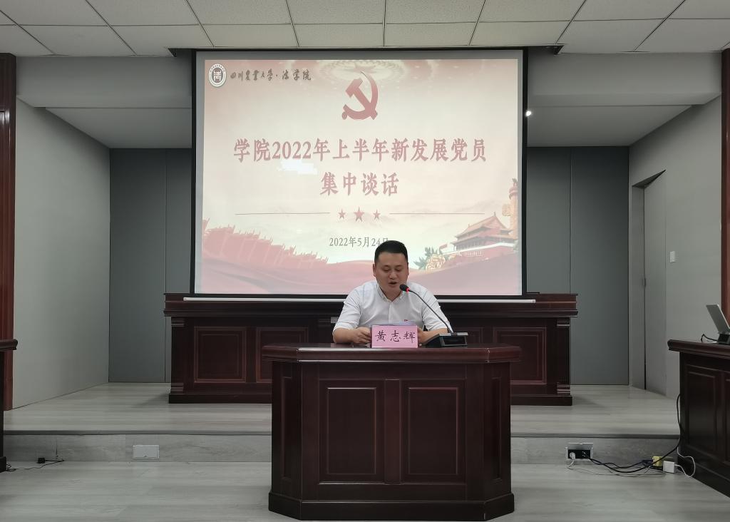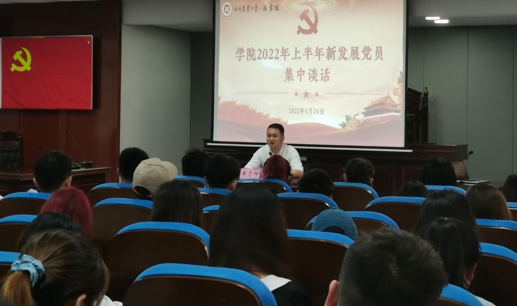 为进一步端正新发展党员入党动机,坚定理想信念,5月24日中午,学院在文法楼119举行了新发展党员集中谈话会,此次集中谈话由学院党委办公室主任黄志辉进行。