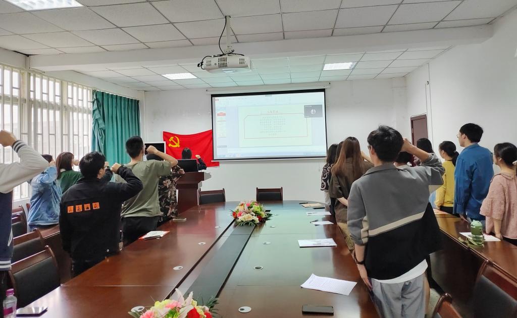 随后,在正式党员的带领下,新党员同志们面对党旗庄严宣誓。党员们精神饱满,会场气氛热烈,誓言声久久回荡。