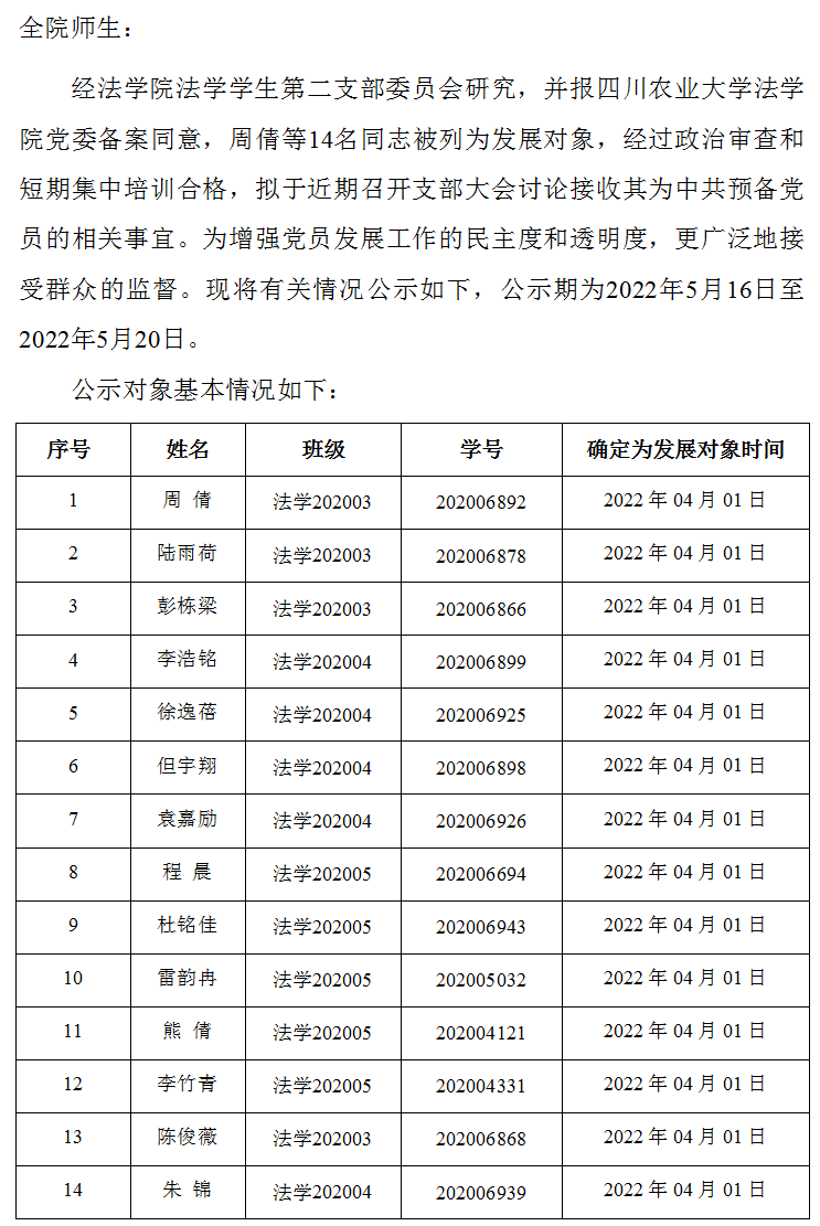 关于拟讨论接收周倩等14名同志为中共预备党员的公示