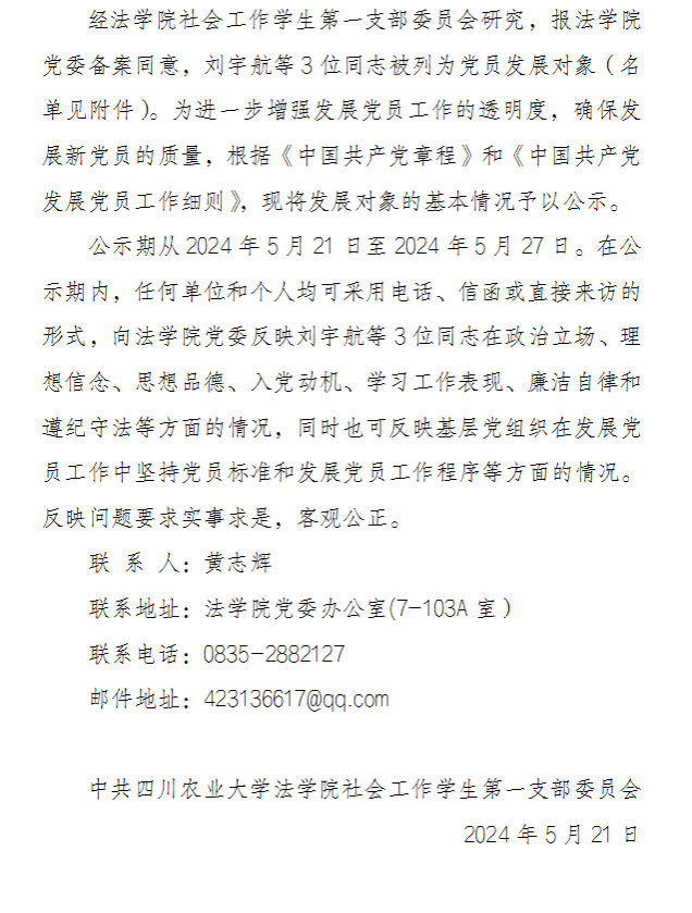 关于拟讨论接收刘宇航等3位同志为中共预备党员的公示