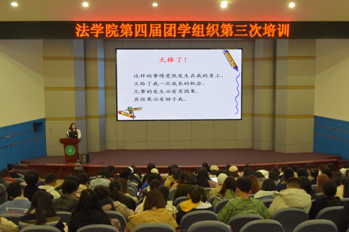 为促进学院团学组织各项工作的顺利进行,让干事更快地提升自我能力与工作素养,争做优秀的学生干部,学院于11月29日中午在逸夫楼小礼堂开展了以争做优秀的学生干部为主题的第四届团学组织第三次培训。此次培训由党委办公室老师蒋东序主讲,组织人事部干事李旭丽主持,全体主干及干事参与。