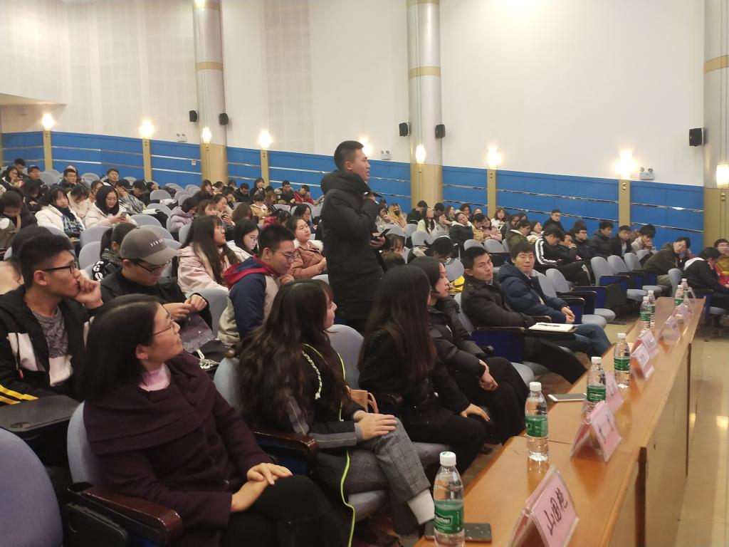 两位优秀校友的分享结束后则是现场的提问互动环节,主持人鼓励在场同学利用此次机会,与两位优秀的师兄相互交流。在场同学积极参与,一位同学在听完分享后提出自己的问题,他问道,自身的价值观不能接受一些案主的情况与特点,是否不适合社工这个职业。周凌旭答到,没有一个人是完美的,一起重新成长,要学会看见自己专业方面的不足,并学会成长。