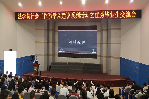 为了加强学风建设、营造良好的学习氛围,让各位同学对自身未来发展有更加清晰的认知和规划,5月14日下午,学院社会工作系在逸夫楼小礼堂举办了“社会工作系学风建设系列活动之优秀毕业生交流会”。学院党委副书记朱雨欣、社会工作系系主任齐华栋以及社会工作系山国艳、陈焱、张勇、胡家琪等老师受邀出席了此次交流会。