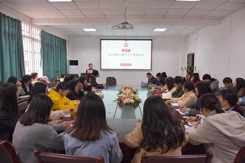 为提高团学干部工作素养,帮助主干们明确工作目标,找准角色定位,3月15日,学院于文法楼112会议室召开了第二期青马工程培养班培训会。本次培训会特别邀请到了体育学院党委副书记何勇主讲,学院团委副书记、党委办公室副主任黄志辉主持本次会议,学院第三届团学组织全体主干参加此次培训。