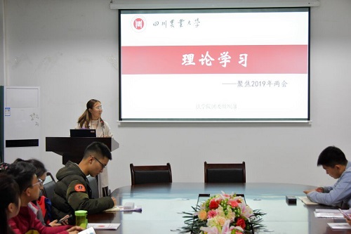 改革进行时,丰富新征程。两会的召开牵动着全国人民的心,为了跟进两会精神,提高团干的思想理论水平和政治素质,3月8日下午,院团委在文法楼112召开了以聚焦两会为主题的政治理论学习会议,学院2017、2018级团支书和学院组织部成员参与了本次理论学习活动,组织部干事严彬宁主持会议流程。