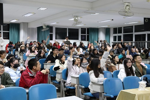 经过初赛和复赛的层层选拔,此次共有10名选手入围决赛。赛中10名选手两两组队,进行必答和抢答两个答题环节,最后按照答题正确数进行积分,积分最高者获得本次竞赛冠军。在主持人宣布完比赛规则之后,决赛正式开始。第一环节为必答题,其中包括选择题、判断题和问答题三大题型,囊括了政治、历史、地理、体育、法律、生活等多个维度的百科知识。选手们冷静沉着,发挥自如,彼此间你来我往,毫不相让,各方积分不相上下。来到更为激烈的抢答环节时,场上的选手们瞬间紧张起来,使出了浑身解数,认真聆听主持人念题,不放过任何一个细节的字,遇到自己会的题就马上起来抢答,现场气氛一度紧张刺激,紧紧地抓住了观众们的心。最后,由徐思静和张钰涓同学以115的积分领先,获得本次知识竞赛的冠军。除却紧张的选手竞赛环节以外,活动现场还进行了观众抢答互动,简短的观众问答却充分的激发了场下观众的热情,令人意犹未尽。
