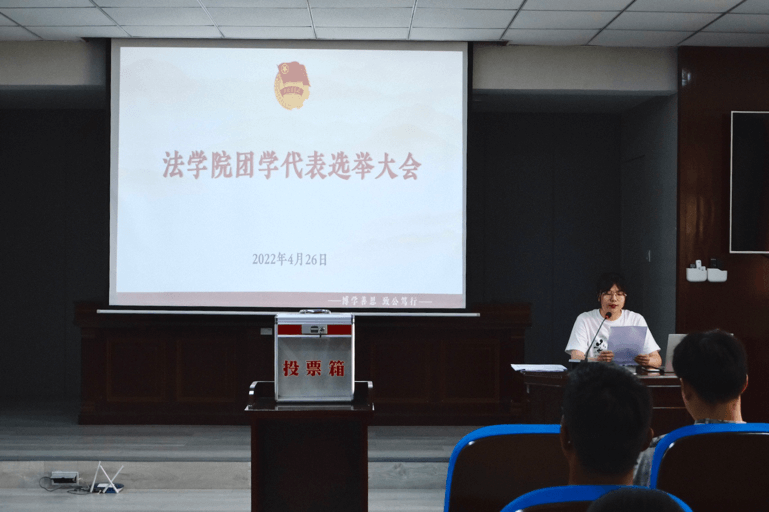 4月26日下午,学院团学代表选举大会在文法楼119召开。学院团学代表候选人、各班级团支书、班长到场参加,学院学生团委副书记陈韵主持会议。