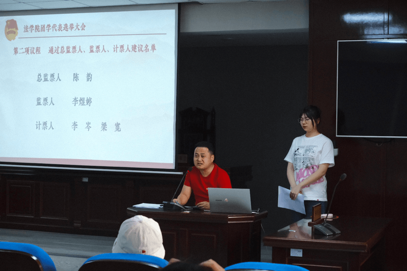 大会以无记名投票方式进行差额选举,最终结果如下:赵野逸、黄志辉为团代表;张芮槐、张光照为团学代表兼常任代表候选人;贾钊琳、黄星渝为学代表;王羲雅、尹煦升、严浩英、陈玉琴等八人为为团代表兼学代表。