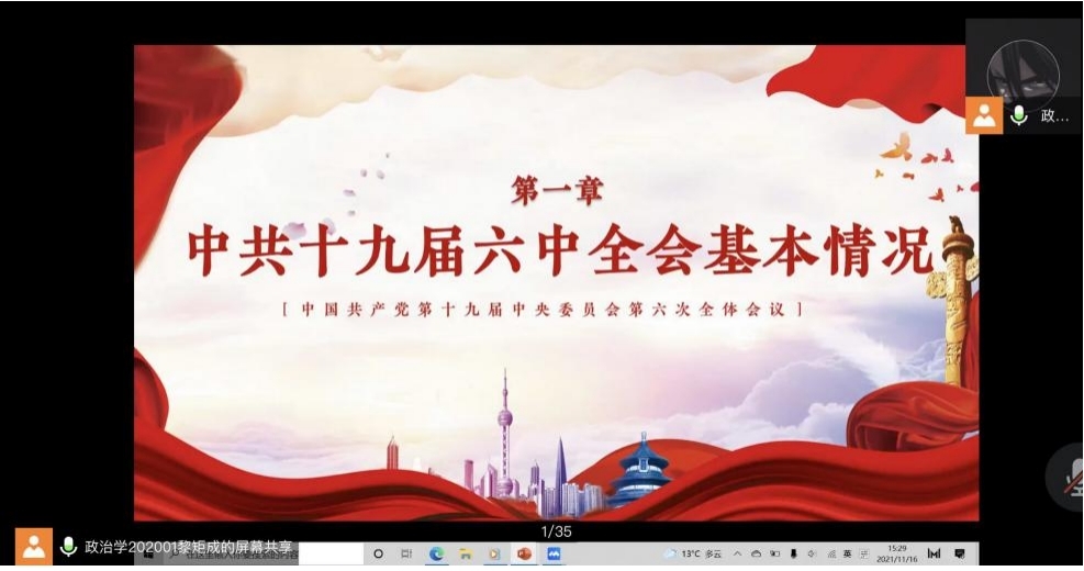 学生党建服务中心青先部主干陈诺同学领学党的十九届六中全会内容