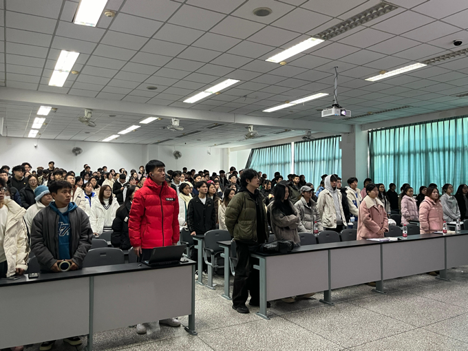 活动伊始,在场学生依次有序入场,主持人热情地欢迎各位嘉宾、学长学姐的到来。随后,全体人员起立,唱响团歌,激昂的歌声回荡在活动现场,为整个活动奠定了庄严而热烈的氛围。