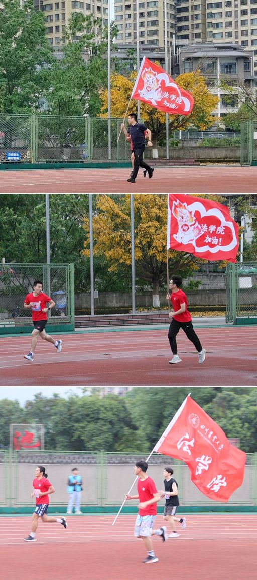 运动场上不单是体能和技巧的较量,还有很多“幕后英雄”。有一抹红格外亮眼,那就是学院院旗。学院党委书记周海波在男子五千米比赛时扛起院旗,陪着运动员一同奋力奔跑,鼓励运动员奋勇向前!跑道外,呼声阵阵,身着院服的yl8cc永利官网学子挥舞着加油棒,奋力呐喊,为运动员加油助威。