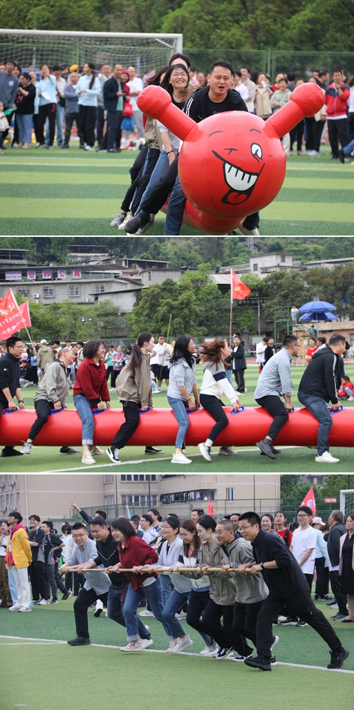 教职工趣味运动会在三区操场有条不紊地展开,成为本次运动会一大亮点。在极具趣味的团体项目中,教职工积极参与,同学们为老师们呐喊助威。