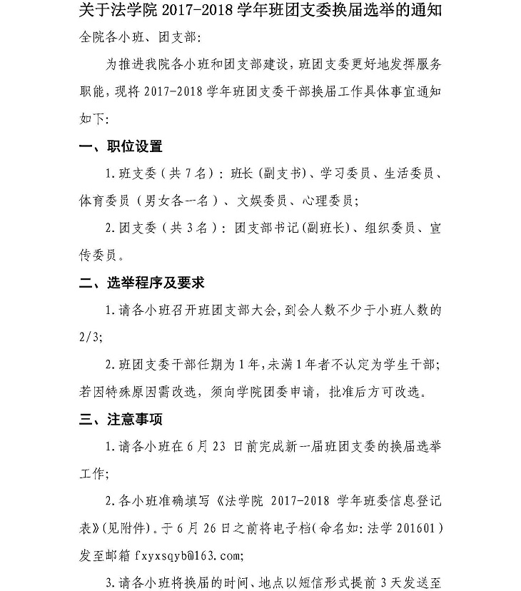 关于yl8cc永利官网2017-2018学年班团支委换届选举的通知