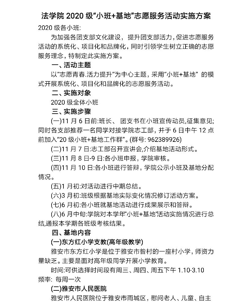 yl8cc永利官网2020级“小班+基地”志愿服务活动实施方案