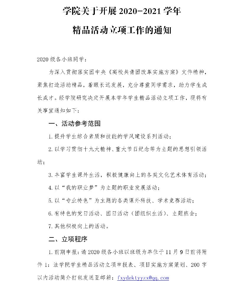 关于开展2020-2021学年学生精品活动立项工作的通知