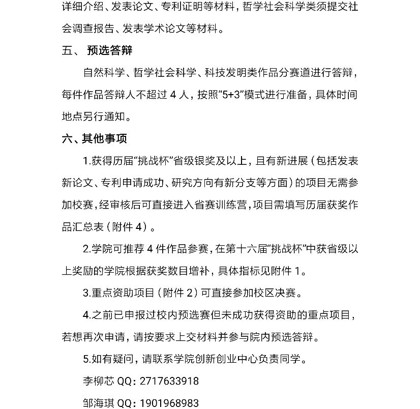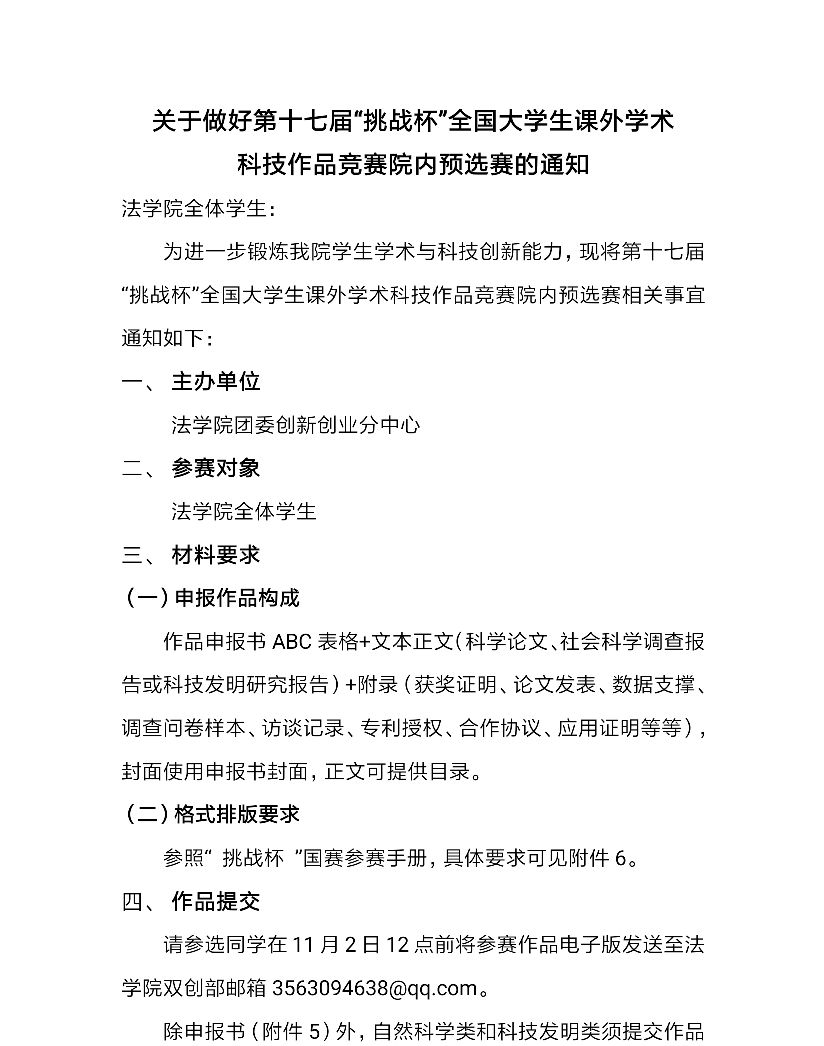 关于做好第十七届“挑战杯”全国大学生课外学术科技作品竞赛院内预选赛的通知