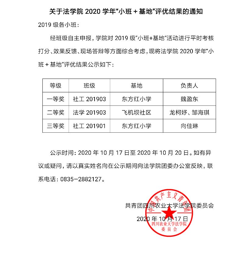 关于yl8cc永利官网2020学年“小班+基地”评优结果的通知