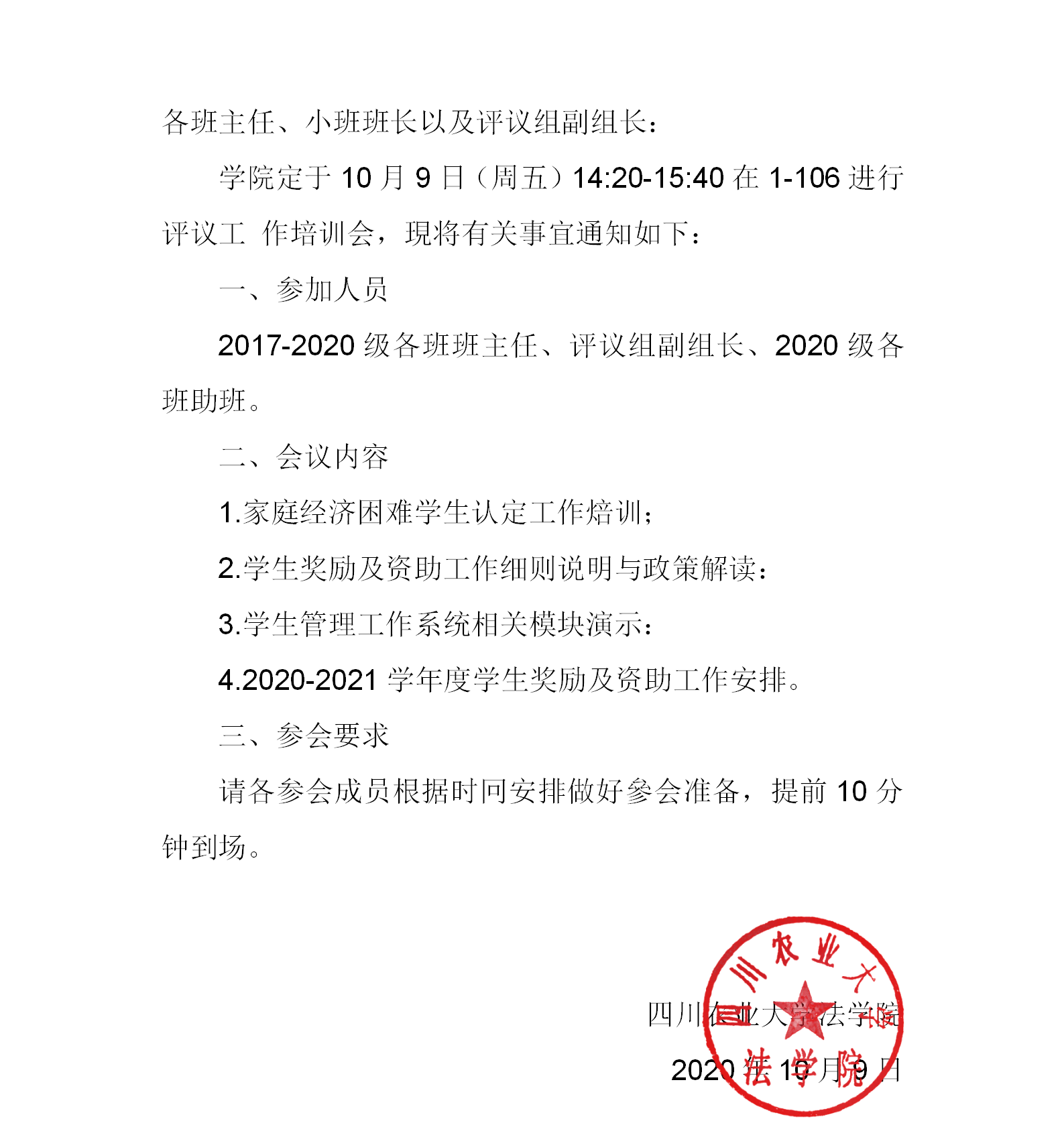 关于召开2020-2021学年度学生奖励及资助工作培训会的通知