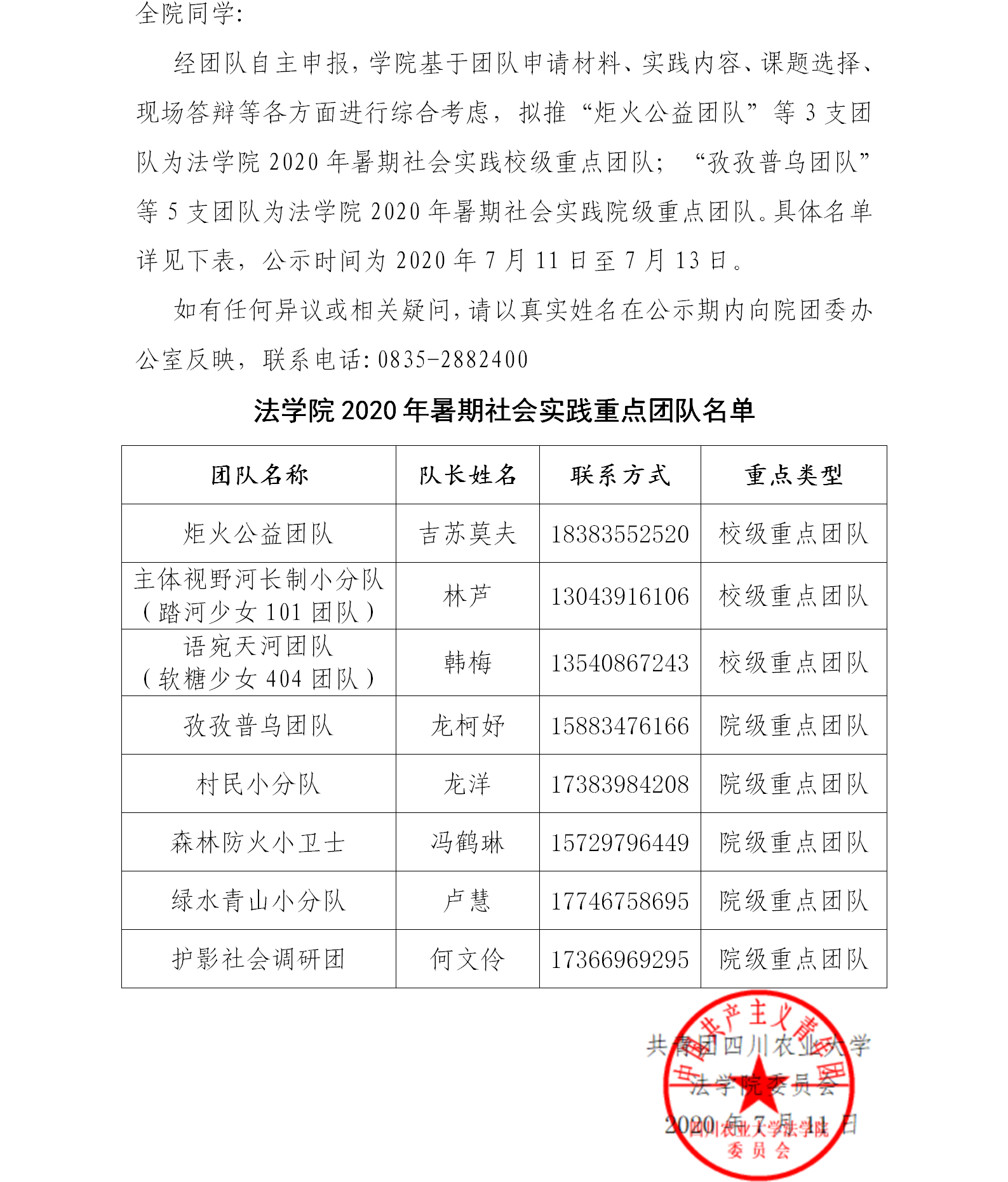 关于2020年暑期社会实践重点团队遴选结果的通知