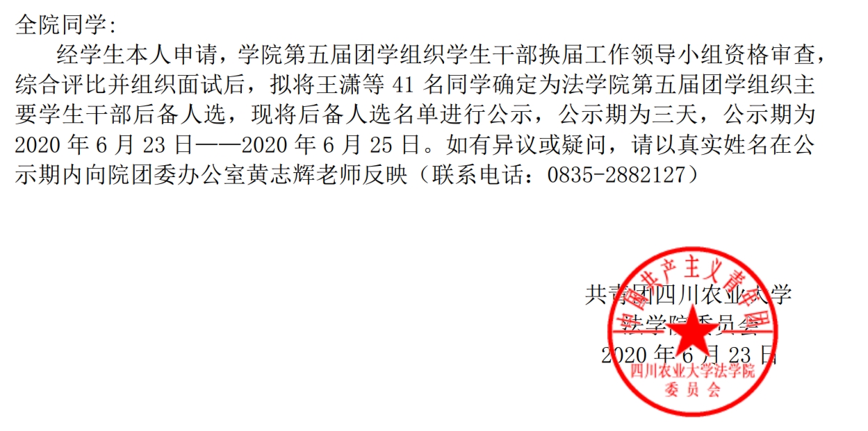 关于第五届团学组织换届情况的公示