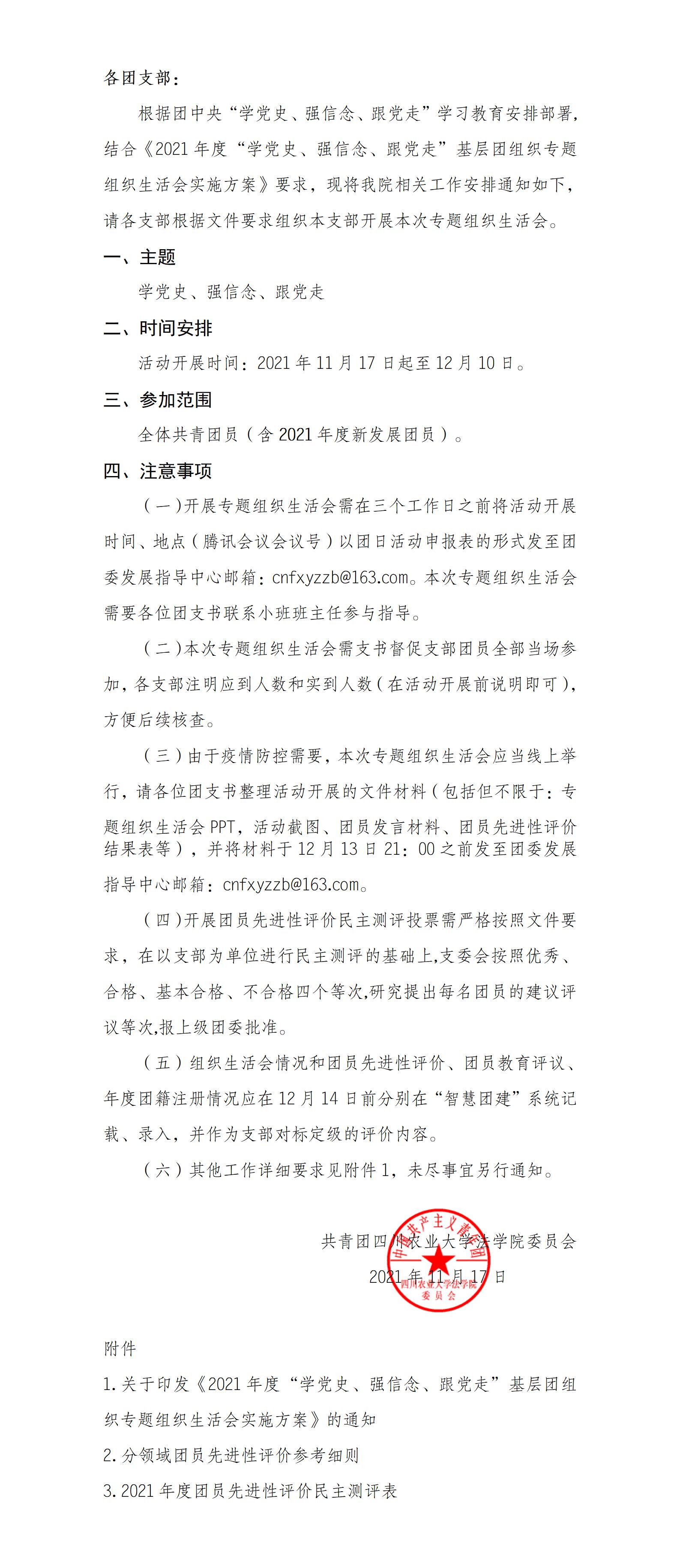 关于开展2021年度“学党史、强信念、跟党走”基层团组织专题组织生活会的通知