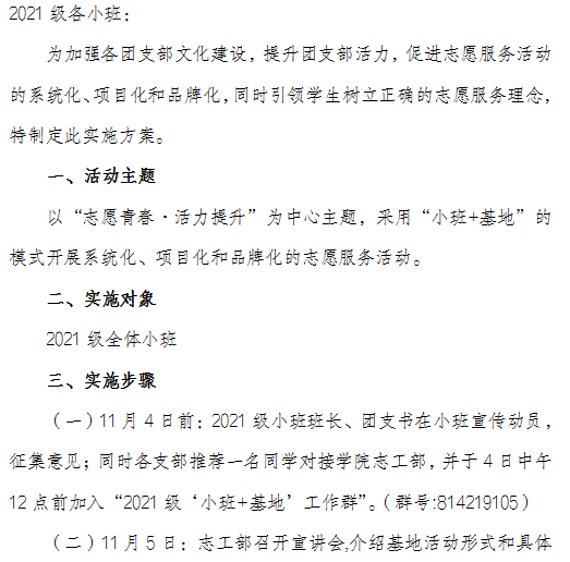 yl8cc永利官网2021级“小班+基地”志愿服务活动实施方案