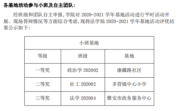 关于学院2020-2021学年基地活动评优结果的通知