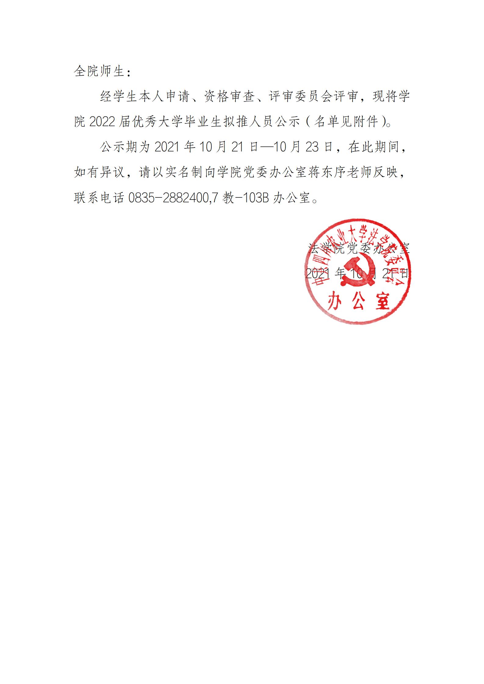 学院关于2022届优秀大学毕业生拟推结果的公示
