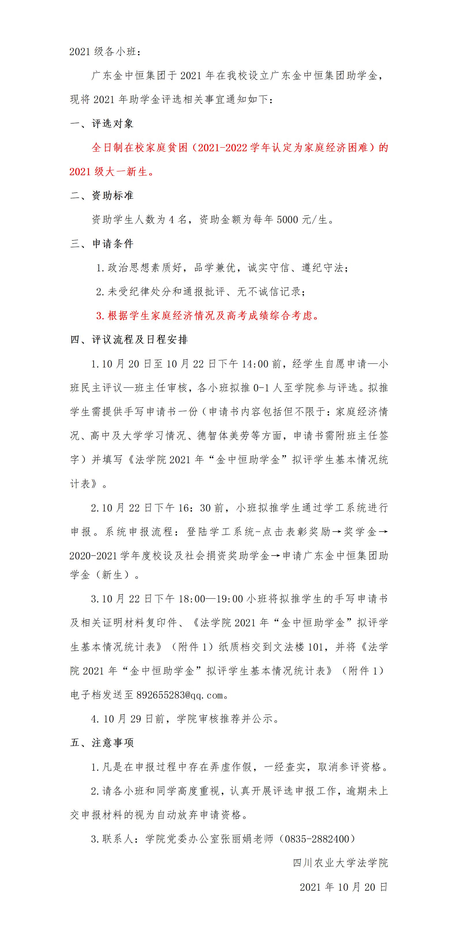关于开展2021年“广东金中恒集团助学金”评选工作的通知
