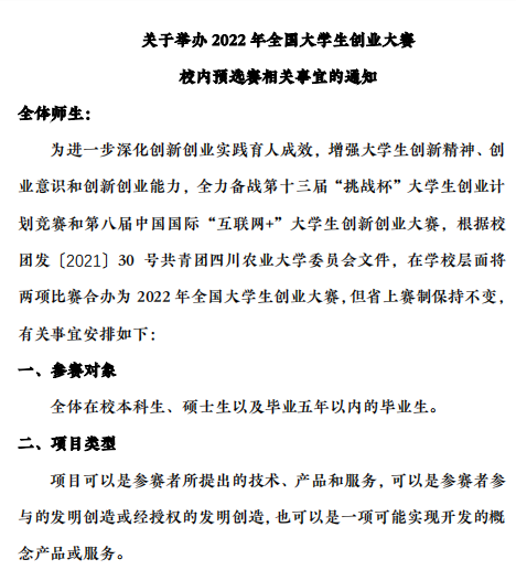 yl8cc永利官网关于举办2022年全国大学生创业大赛校内预选赛相关事宜的通知