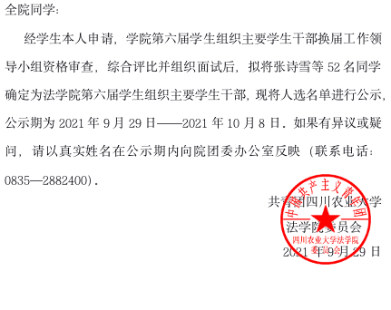 关于yl8cc永利官网第六届学生组织换届情况的公示