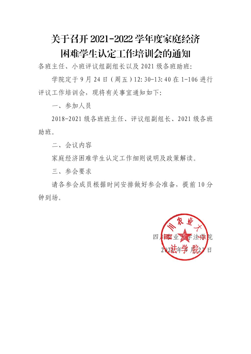 关于召开2021-2022学年度家庭经济困难学生认定工作培训会的通知