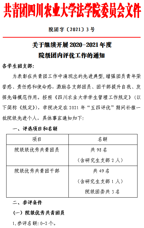 关于继续开展2020-2021年度院级团内评优工作的通知