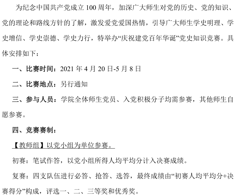 关于举办“庆祝建党百年华诞”党史知识竞赛的通知