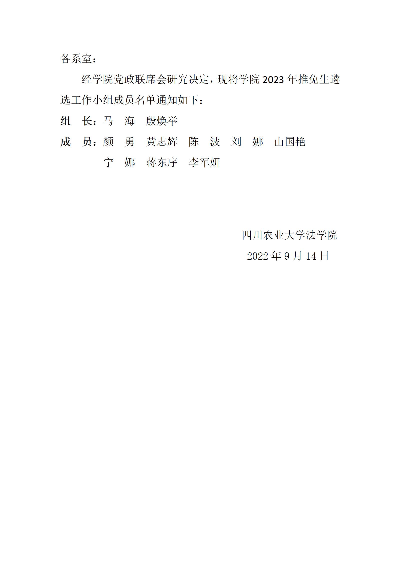关于成立yl8cc永利官网2023年推免生遴选工作小组的通知